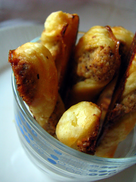 sacristans I offer are hazelnuts, but of course you can vary: walnuts, pecans ... Be careful that your filling is quite "dense" but flexible enough to be spread over the batter without sinking. A shot of gilding, voila! I give you a little more detail?